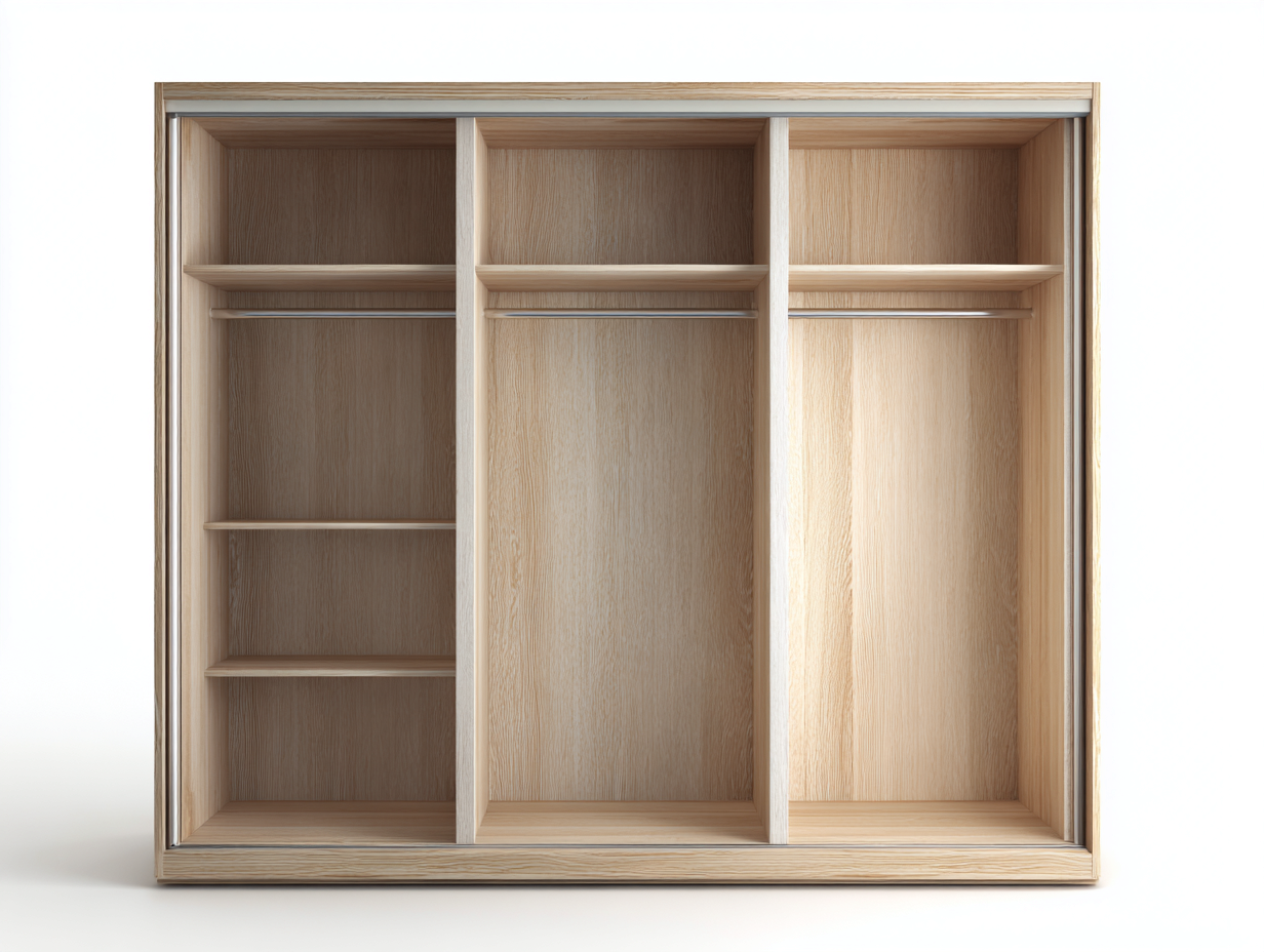 Der offene Innenraum ermöglicht eine flexible Nutzung für Kleidung und Textilien. Die integrierte Aufhängemöglichkeit eignet sich für Hemden, Jacken und Kleider. Die seitlichen Ablageflächen unterstützen eine geordnete Unterbringung von gefalteten Kleidungsstücken und weiteren Alltagsgegenständen.