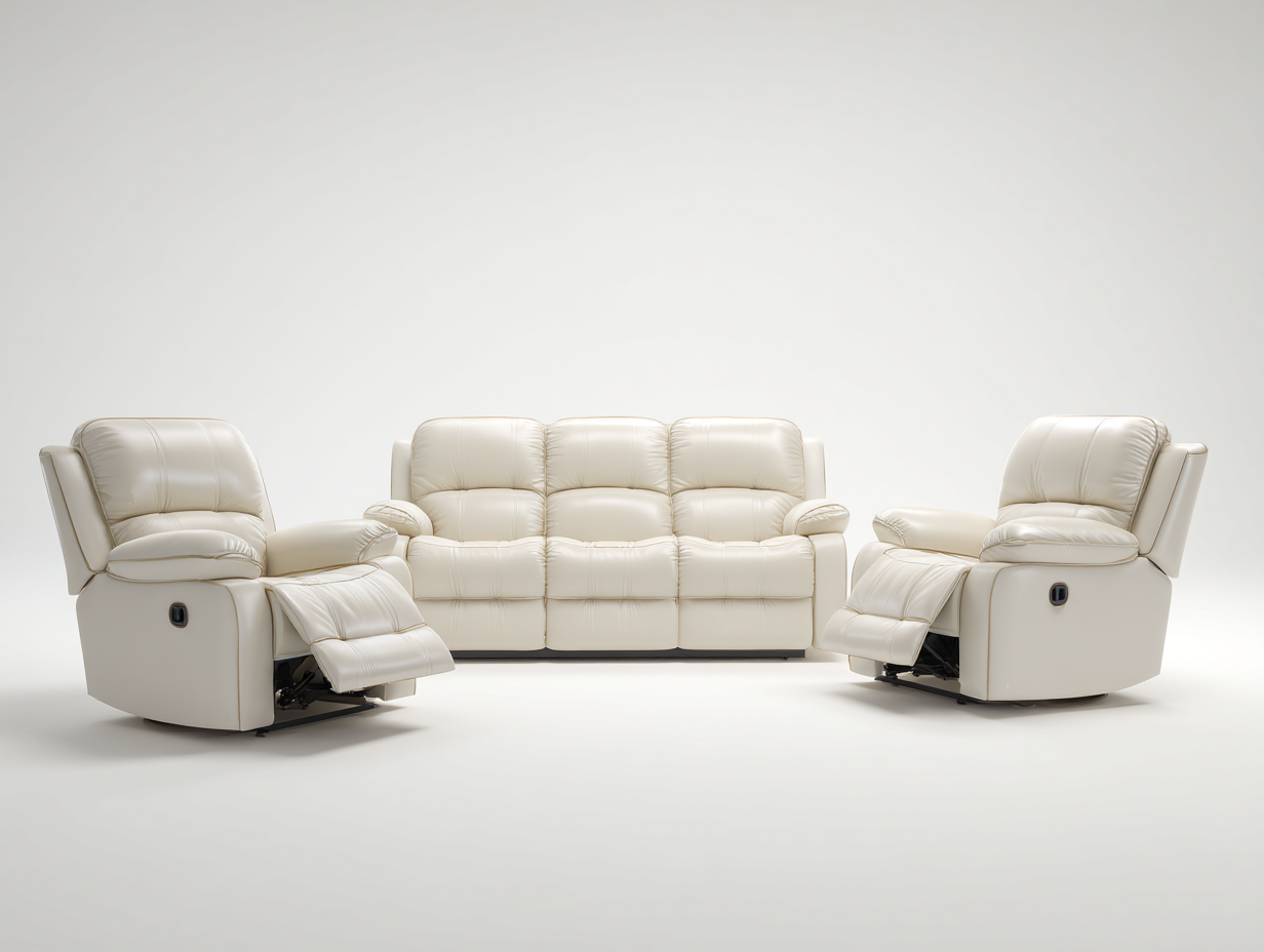 Dieses Relaxsofa Set besteht aus einem großzügigen Sofa und zwei komfortablen Sesseln und eignet sich ideal für anspruchsvolle Wohnbereiche. Die weich gepolsterten Sitz- und Rückenflächen sorgen für hohen Sitzkomfort, während die Relaxfunktion eine angenehme Liegeposition ermöglicht. Das helle Erscheinungsbild unterstützt eine freundliche Raumgestaltung.